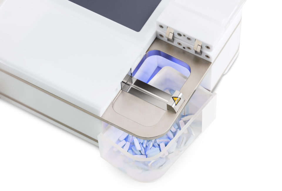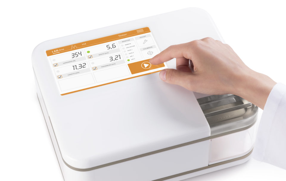 For quick and simple testing, the H-Series offers you a wide functionality in a smallest housing. To perform a test, tablets up to 60mm in diameter are placed in the external balance and the testing station, set up or choose the product receipe and click the start button. So fast!