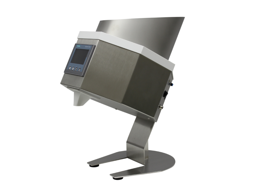 The machine has a built-in cleaning unit which can optionally be switched on. This is connected to a compressed air connection (clean, dry and oil-free pharmaceutical air, inlet pressure 1-5 bar). We recommend cleaning for very dusty products.