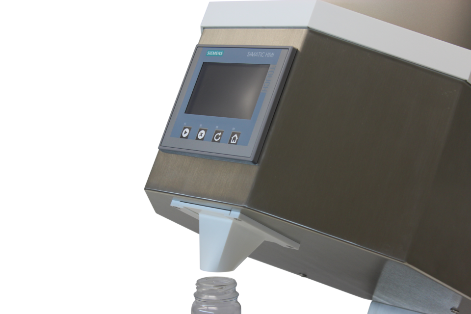 Fully automatic filling system as additional module. Depending on the bottle / container size, up to 32 containers can be filled in one go via the filling module. The system is simply connected to the I / O port of the machine and is ready to use.