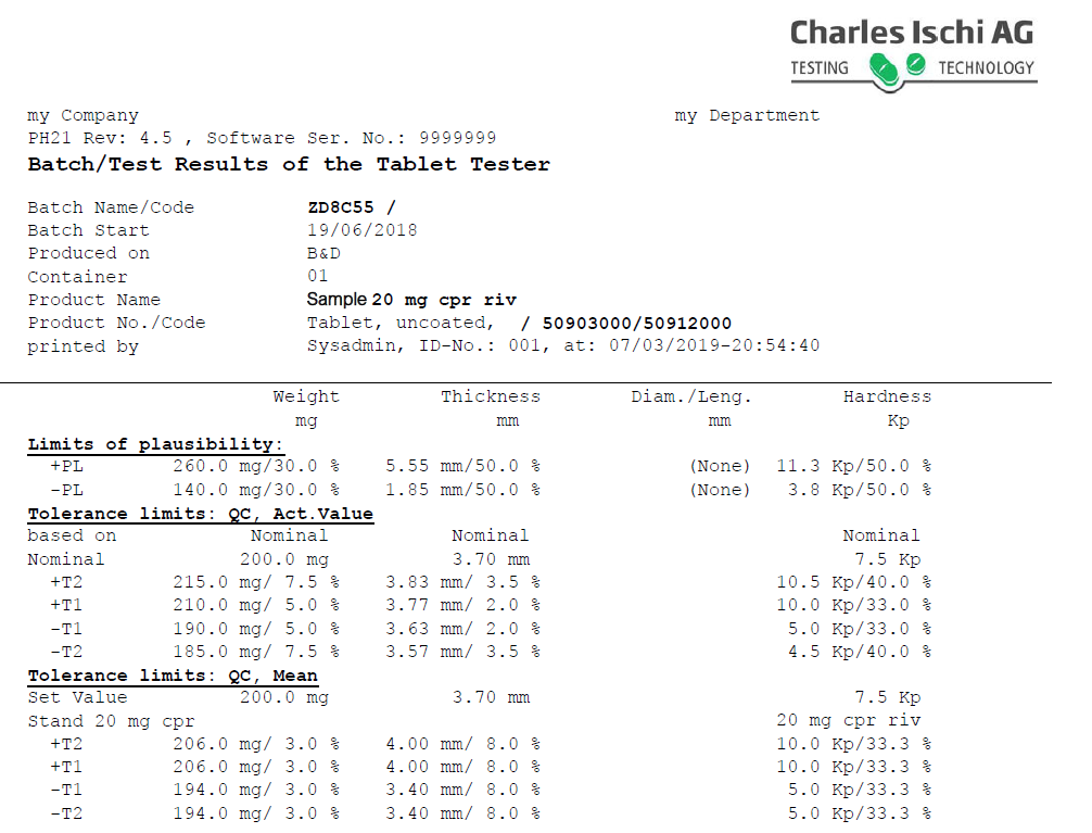 The Ph21 pharmaceutical quality assurance system enables you to control and evaluate your tablet testers, disintegration testers and weighing machines centrally. Once it is stored in the central product database, you can use product-specific data for all tests on the connected devices.